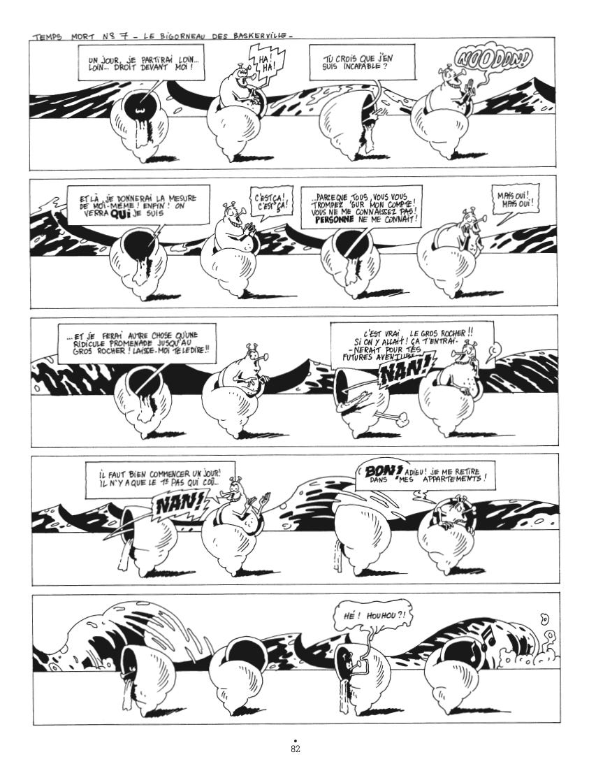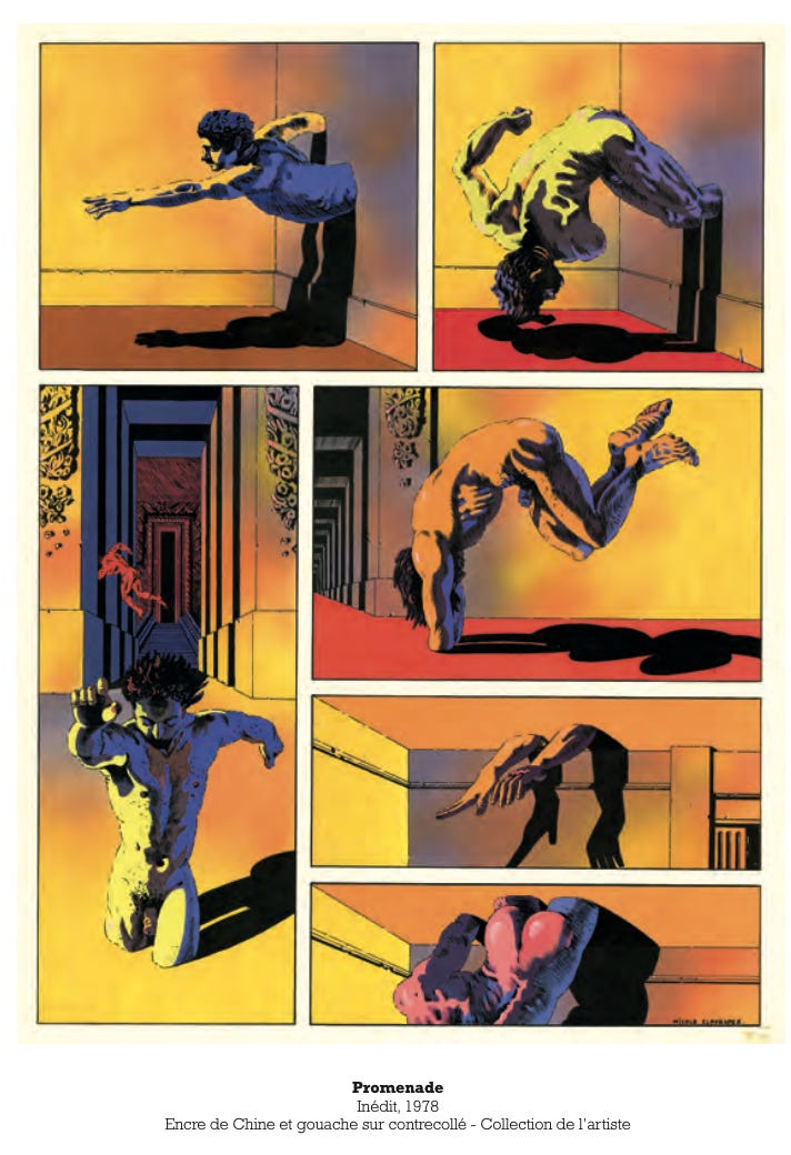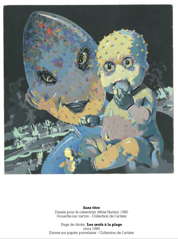 Guarda al passato, lo cita, ma soprattutto sperimenta le tendenze del suo tempo, pubblica da subito su Métal Hurlant e su Ah Nana! la sorella femminile di Métal.