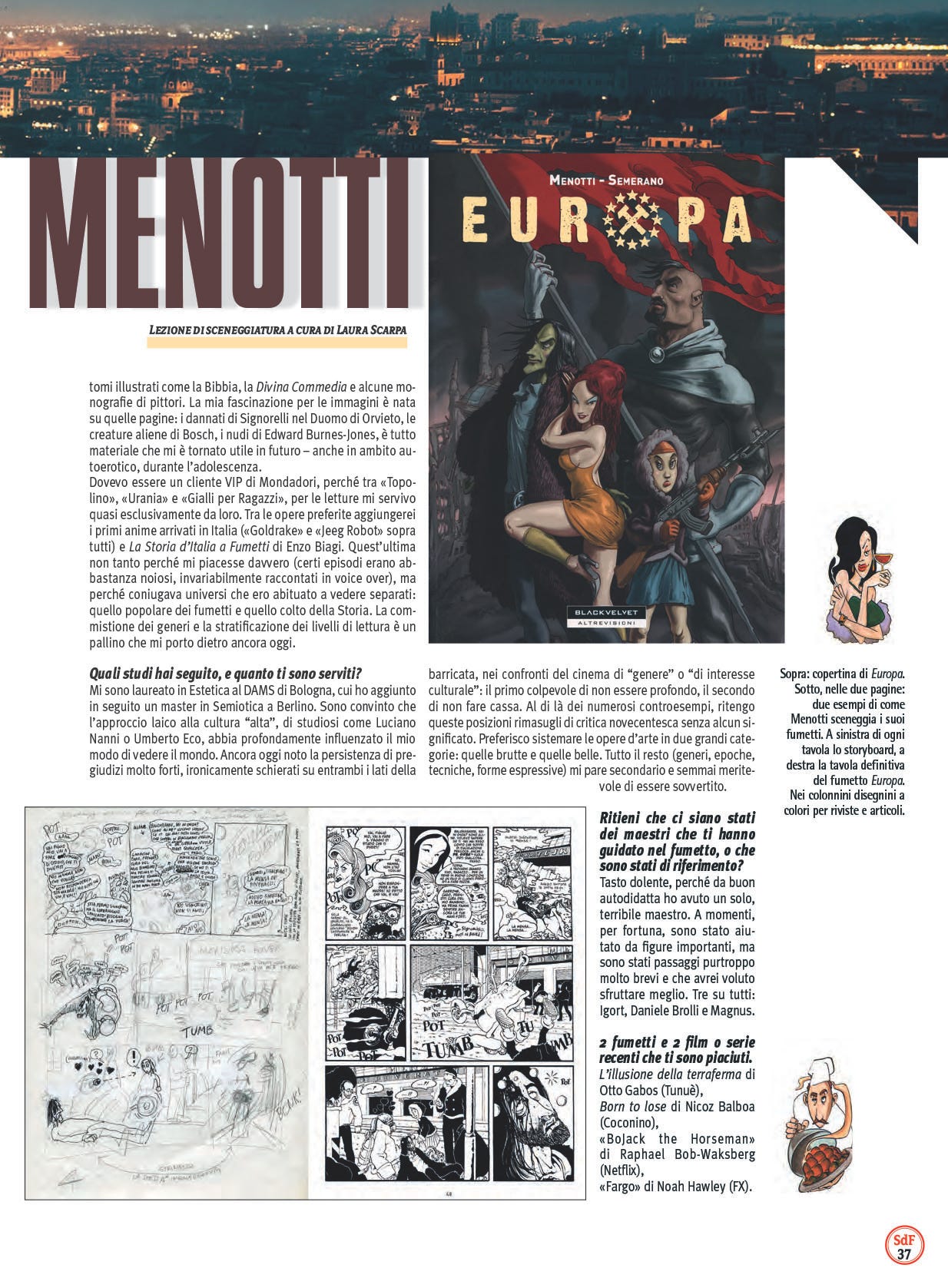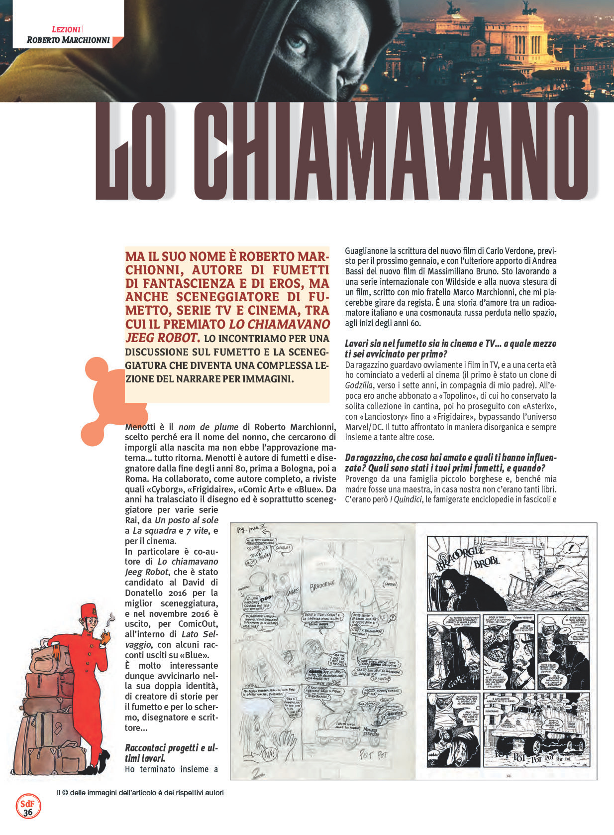 Ecco dunque da SdF 107 una bella intervista all’autore Menotti, autore completo per i fumetti, ma anche sceneggiatore per cinema e TV (Lo chiamavano Jeeg Robot).